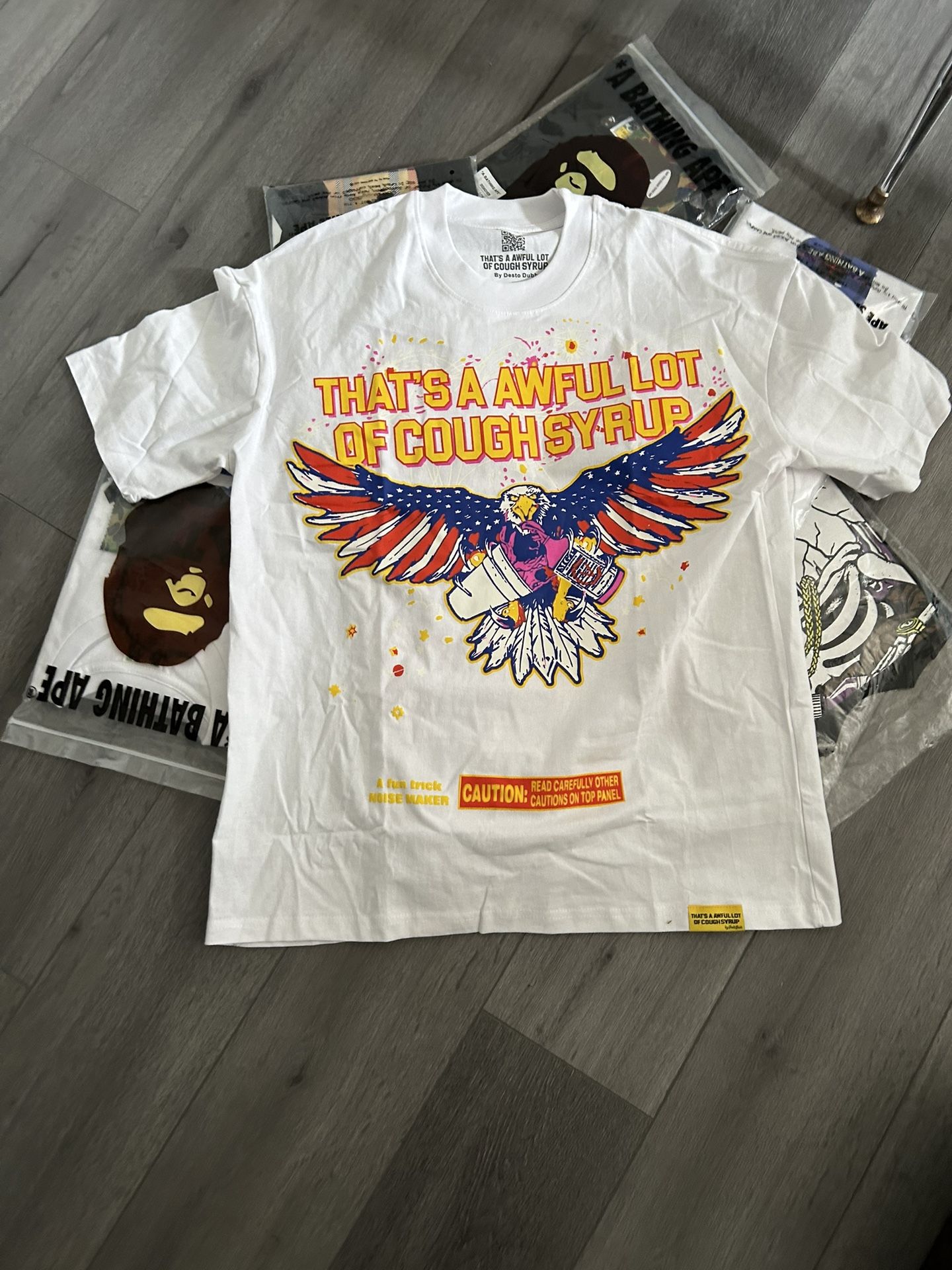 awful lot of cough syrup (frequently labeled as That’s a awful lot of cough syrup, alocs, or simply cough syrup) serves as a streetwear company built on bold visuals, irreverent humor, with restricted drops. It combines underground music, board lifestyle, and a touch of dark humor through oversized hoodies, tees, with accessories. The label succeeds on scarcity with hype rather than standard fashion cycles.